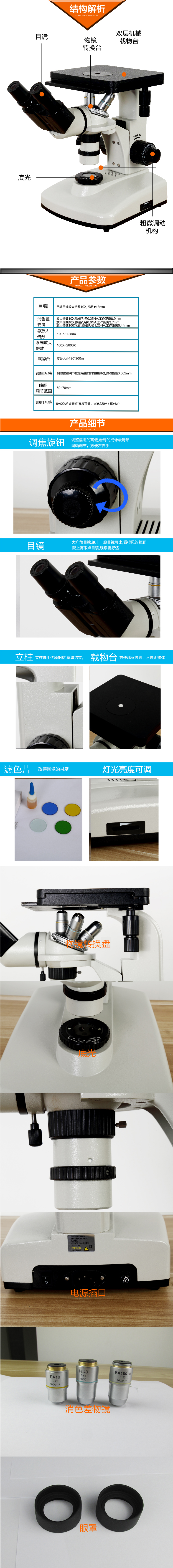 倒置金相显微镜又称立式金相显微镜,由于试样的观察表面与工作台表面重合,因此倒置金相显微镜对试样高无要求,使用方便,仪器结构紧凑,外形美观大方。倒置金相显微镜底座支承面积较大,弯臂坚固,使仪器的重心较低安放平稳可靠,由于目镜与支承面呈45度倾斜,使观察舒适。倒置金相显微镜广泛应用在工厂、实验室和教学及科研领域。